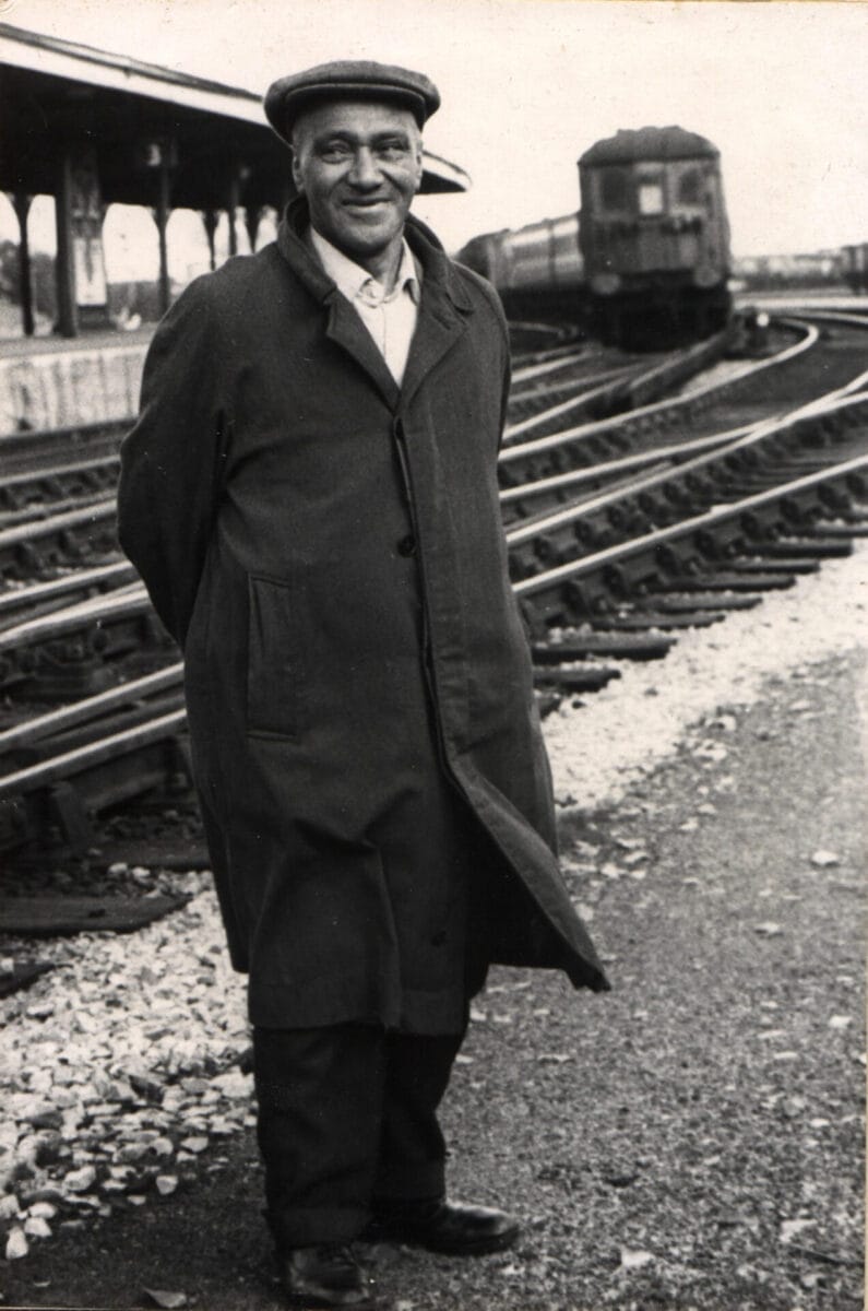 Lorsque sa seconde épouse décéda en avril 1968, il fut officiellement déclaré retraité, mais je crois que ce n'était que depuis quelques années. Dans mon bureau trône fièrement sa photo officielle de départ à la retraite de la British Rail, prise au bord des voies à la gare de Fratton, en face du quai 3, avec une rame électrique garée en arrière-plan. Il porte un long manteau, très probablement noir et non un vêtement haute visibilité, comme l'exige la réglementation actuelle.
